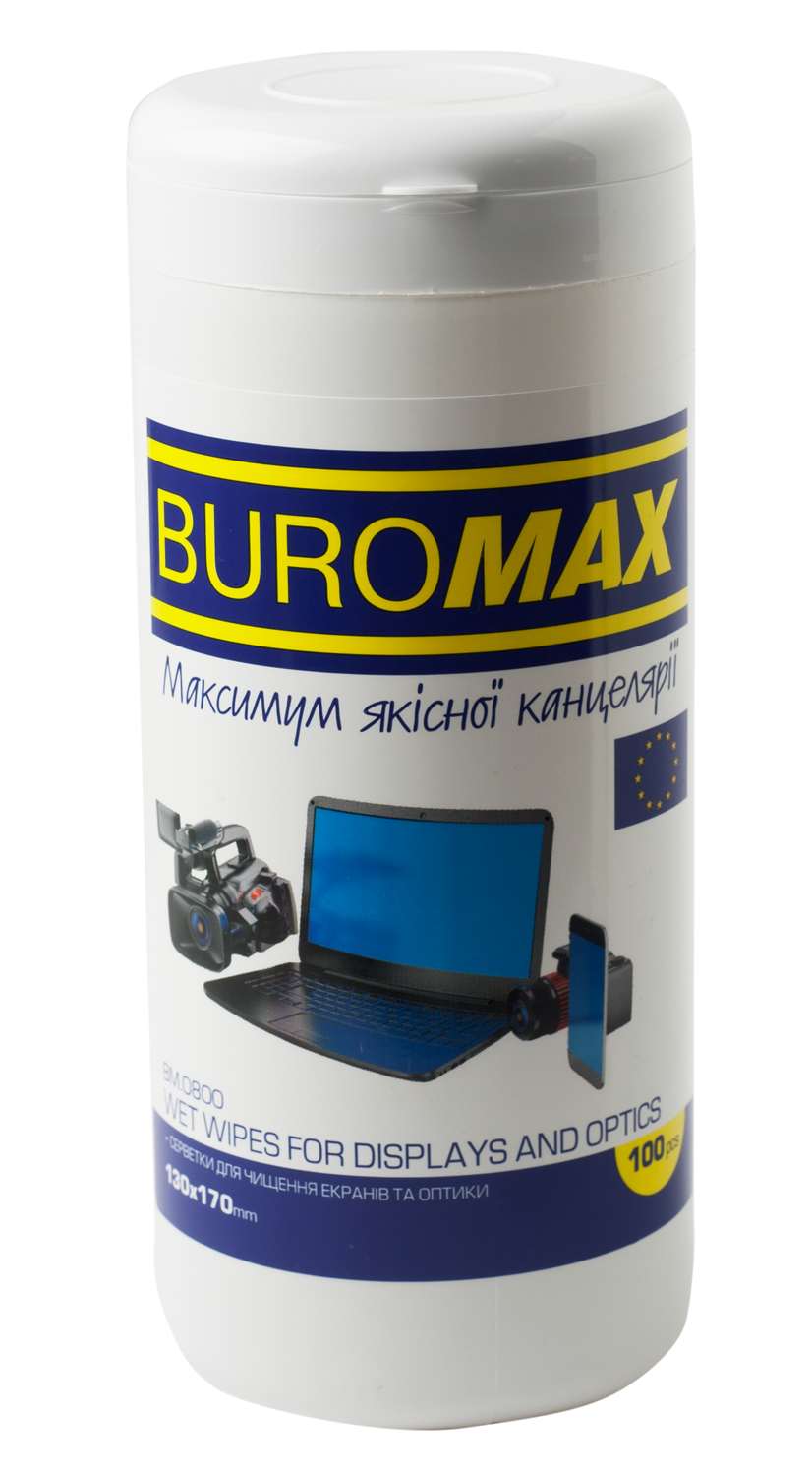 Серветки BUROMAX призначені для очищення ТВ екранів, дисплеїв, моніторів, мобільних телефонів, фотоапаратури, дзеркал, лінз та інших оптичних / скляних поверхонь. вироблені в Європі розмір 1 серветки 130 * 170 мм вологі - просочені спеціальною композицією для очищення, яка не містить спирт та триклозан легко видаляють пил, відбитки пальців та інші забруднення антистатичний ефект, що запобігає швидкому осіданню та накопиченню пилу та бруду на поверхні та забезпечує високу чіткість та якість зображення антибактеріальний ефект гіпоалергенні - безпечні для шкіри рук екологічність - виготовлені з біорозкладаного матеріалу на основі крепованого паперу (не містить та не залишає ворсинок на поверхні, що очищується) по 100 шт. в пластиковій тубі запасний блок (ВМ.0800-01) ВАЖЛИВО: перед очищенням обраної поверхні слід ознайомитися з інструкцією з її очищення.