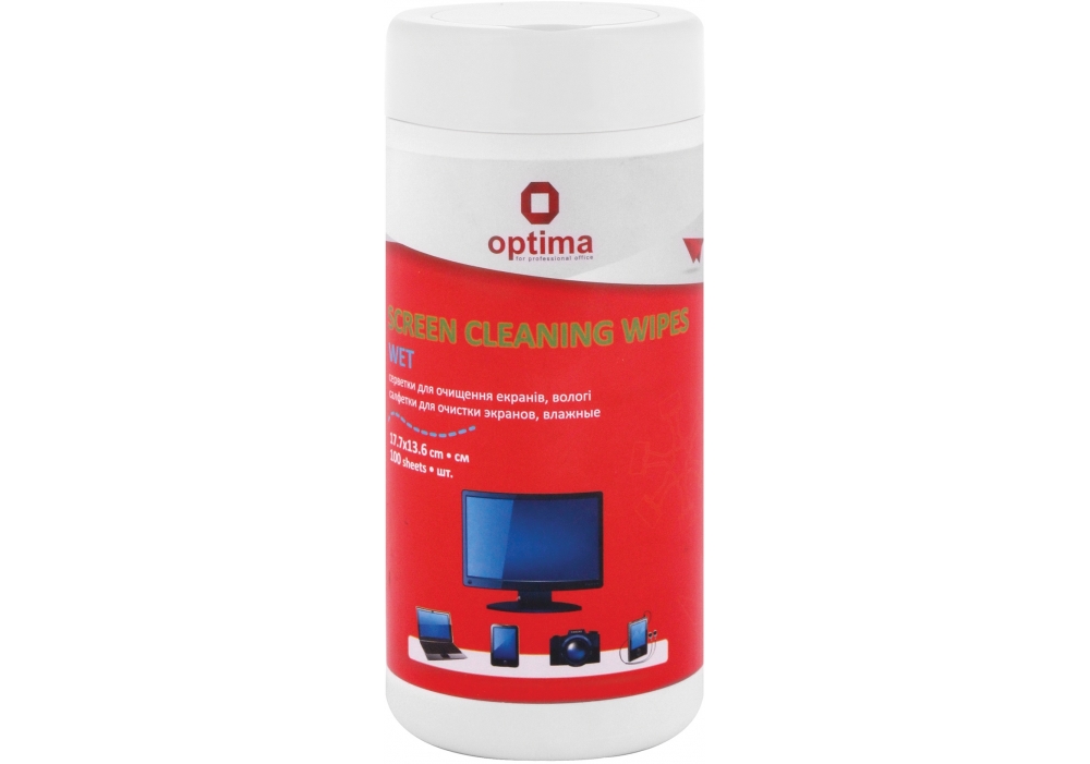 Серветки вологі TM Optima для очищення ТВ екранів, дисплеїв, мобільних телефонів, фотоапаратури, дзеркал, лінз та інших скляних поверхонь. Легко видаляють пил, відбитки пальців та інші забруднення. Антибактеріальні, не містять спирту, без неприємного запаху.